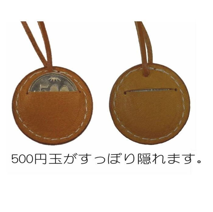表裏牛革貼りあわせで、裏側に500円玉がすっぽり隠れます。