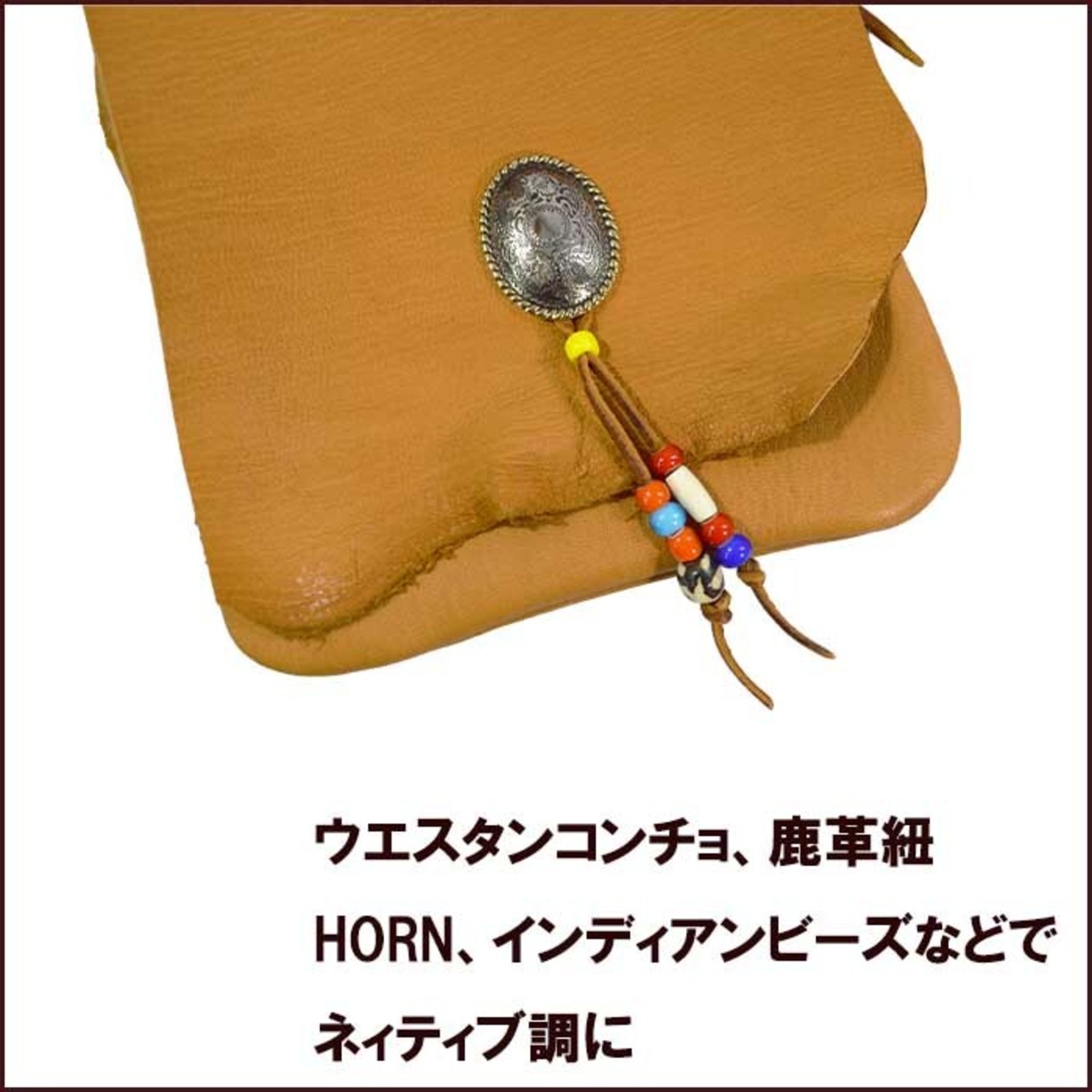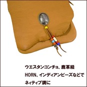 ウエスタンコンチョ付き。ホワイトハーツと呼ばれるインディアンビーズ、HORN(水牛の角)など取り付けています。