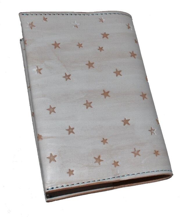 大小の星をスタンピングし、白塗装してかすれさせてあります。