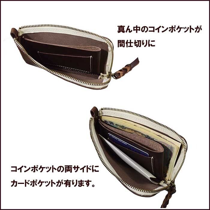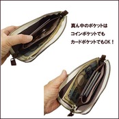 シンプルな構造で内部にコインポケット(両サイドにカードポケット付き)があります。