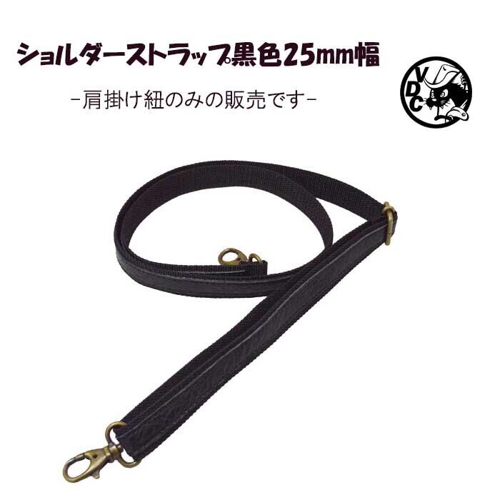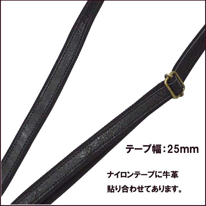 ショルダーストラップ 25mm幅 黒色 肩掛け紐 ナイロンテープに牛革張り合わせ 肩がけ 斜めがけ 26012201