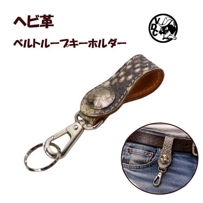 ベルトループ キーホルダー つや無しナチュラルパイソン ヘビ革 蛇革 コインコンチョ 26041601