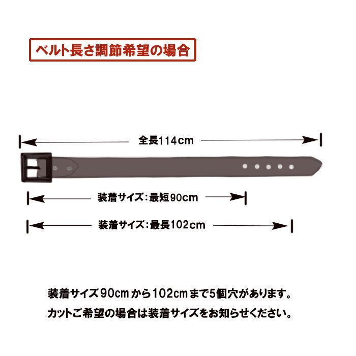 ウエストサイズ:90cm~102cmで5つ穴(3cm間隔)があります