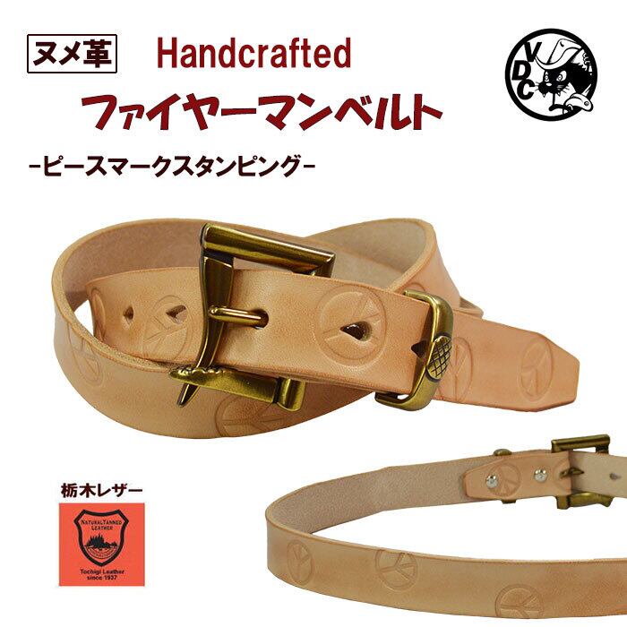 ファイヤーマンベルト 30mm幅 ヌメ革ベルト ピースマーク スタンプ ハンドクラフト 21063001