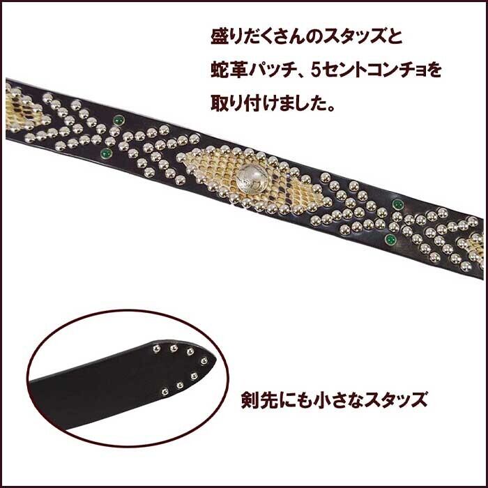 上質の牛革オイルレザー(栃木レザー)にパイソンを張り、1つずつスタッズを打ち込み丁寧に仕上げました。